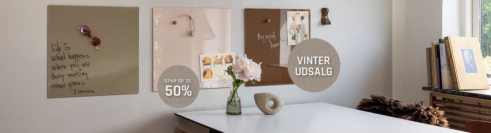 Farverige, magnetiske glastavler, i forskellige design, former og størrelser.